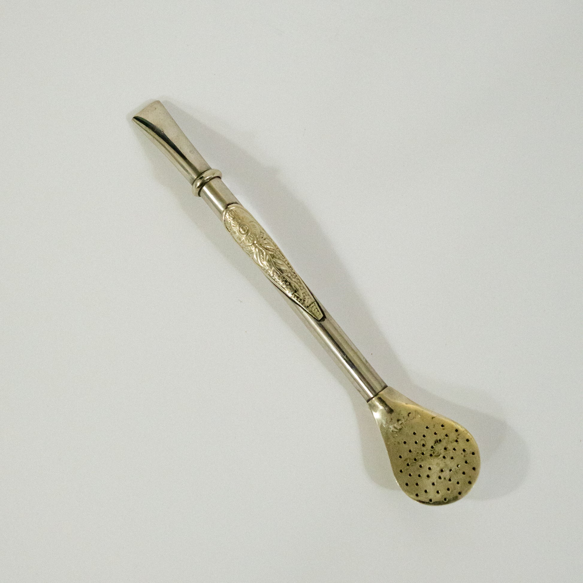 Hecho en alpaca maciza, este bombillón combina la nobleza del metal con un aplique artesanal de girasol, símbolo de energía y alegría. Su diseño equilibra elegancia y calidez, convirtiéndolo en una pieza única para acompañar tus momentos materos.