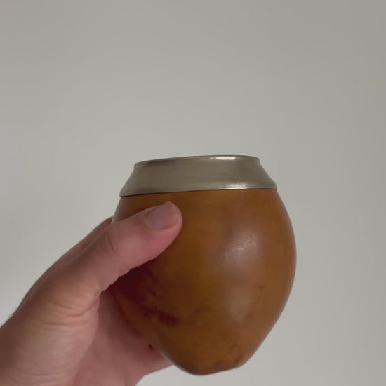 Elaborado en calabaza natural seleccionada y con virola de alpaca, combina la autenticidad del sabor tradicional con durabilidad y firmeza en la boca del mate.