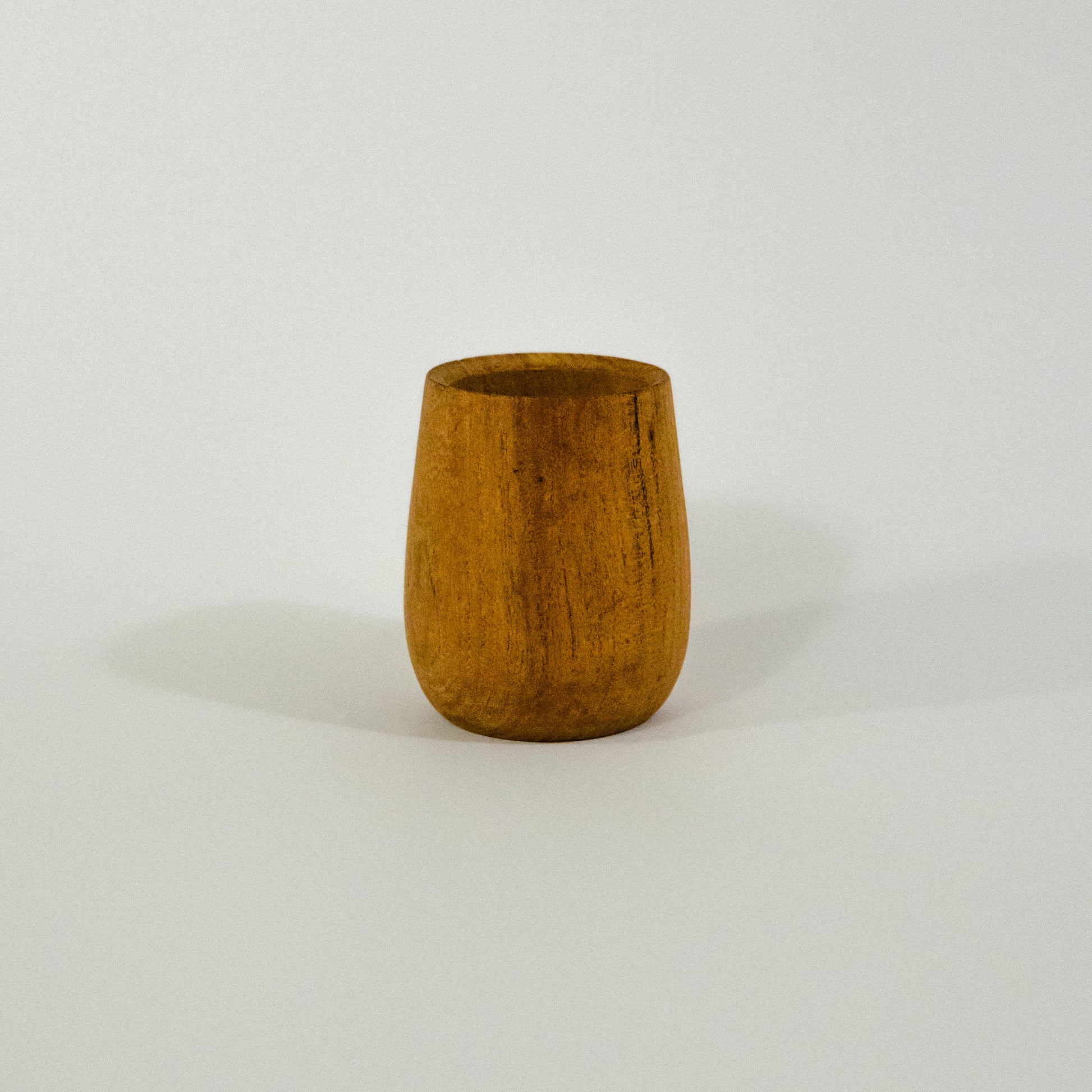 El Mate Vasito de Algarrobo está hecho con madera noble, resistente y de veta única, difícil de conseguir y tornear, convirtiéndolo en una pieza exclusiva y duradera. Su acabado artesanal le aporta tacto suave y un diseño elegante que resalta en cada cebada.