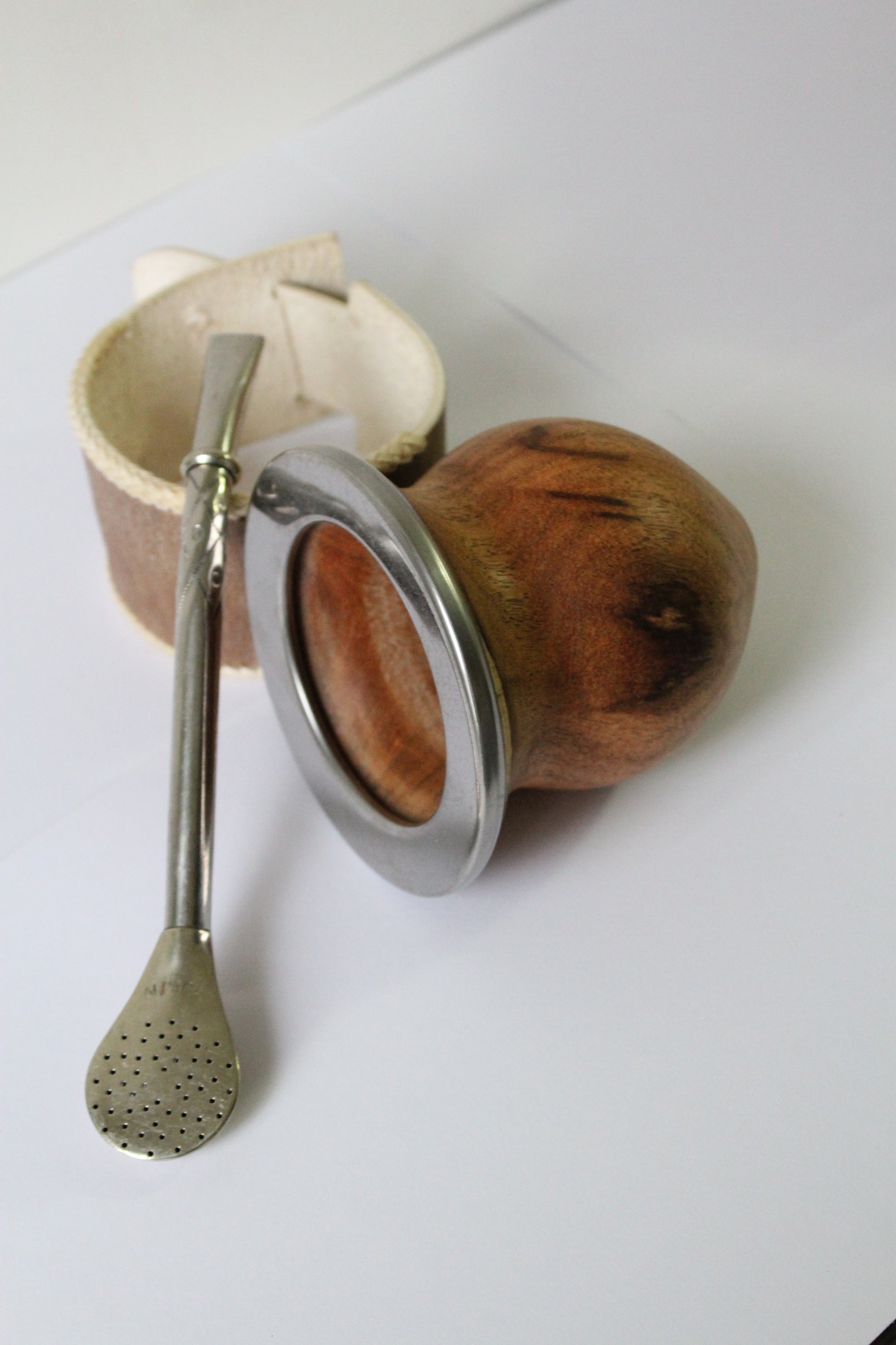 El algarrobo negro se distingue por su tono oscuro, su veta profunda y su gran dureza —una madera tan firme que solo los mejores torneros logran trabajarla. El resultado: un mate imponente, elegante y prácticamente eterno.