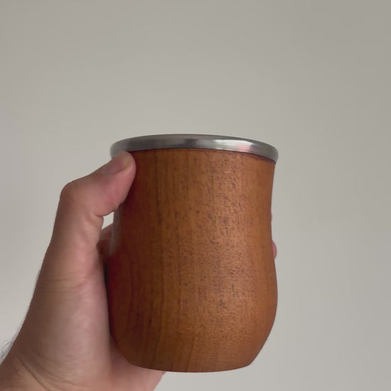 Este mate bocón está elaborado en madera de algarrobo, una madera noble y resistente que realza el sabor natural de la yerba y garantiza una experiencia de mate suave y sin acidez.